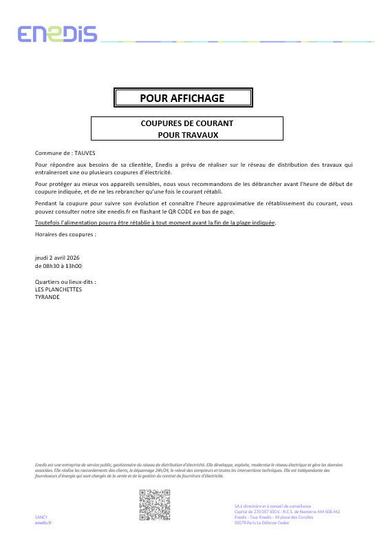 Coupure de courant 2 avril 2026