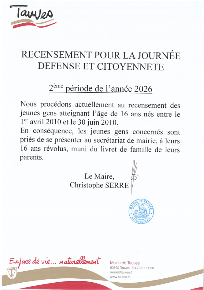 Recensement pour la journée défense et citoyenneté 2ème période 2026