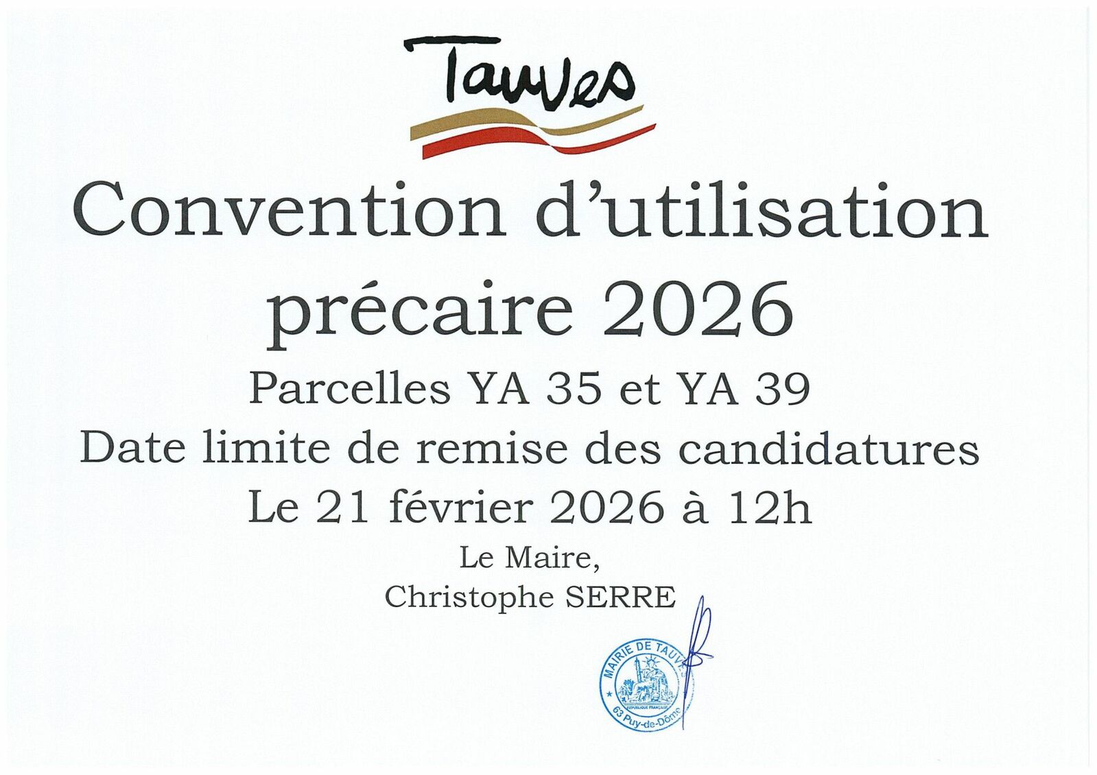 Avis - Candidature - Utilisation précaire 2026 YA 35 et YA 39