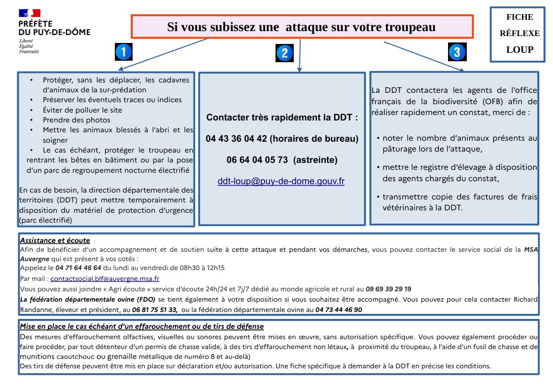 Fiche réflexe loup - Si vous subissez une attaque sur votre troupeau
