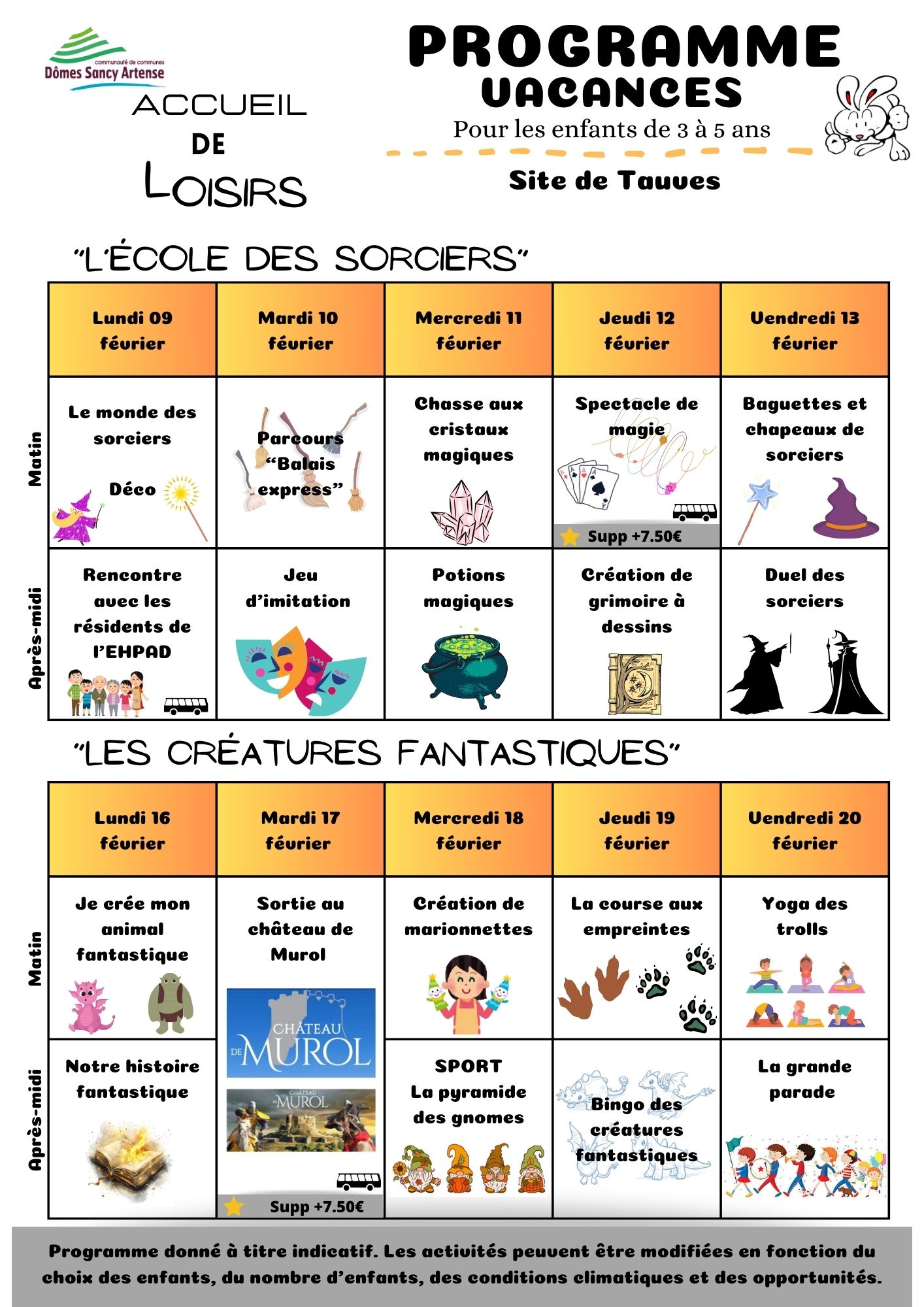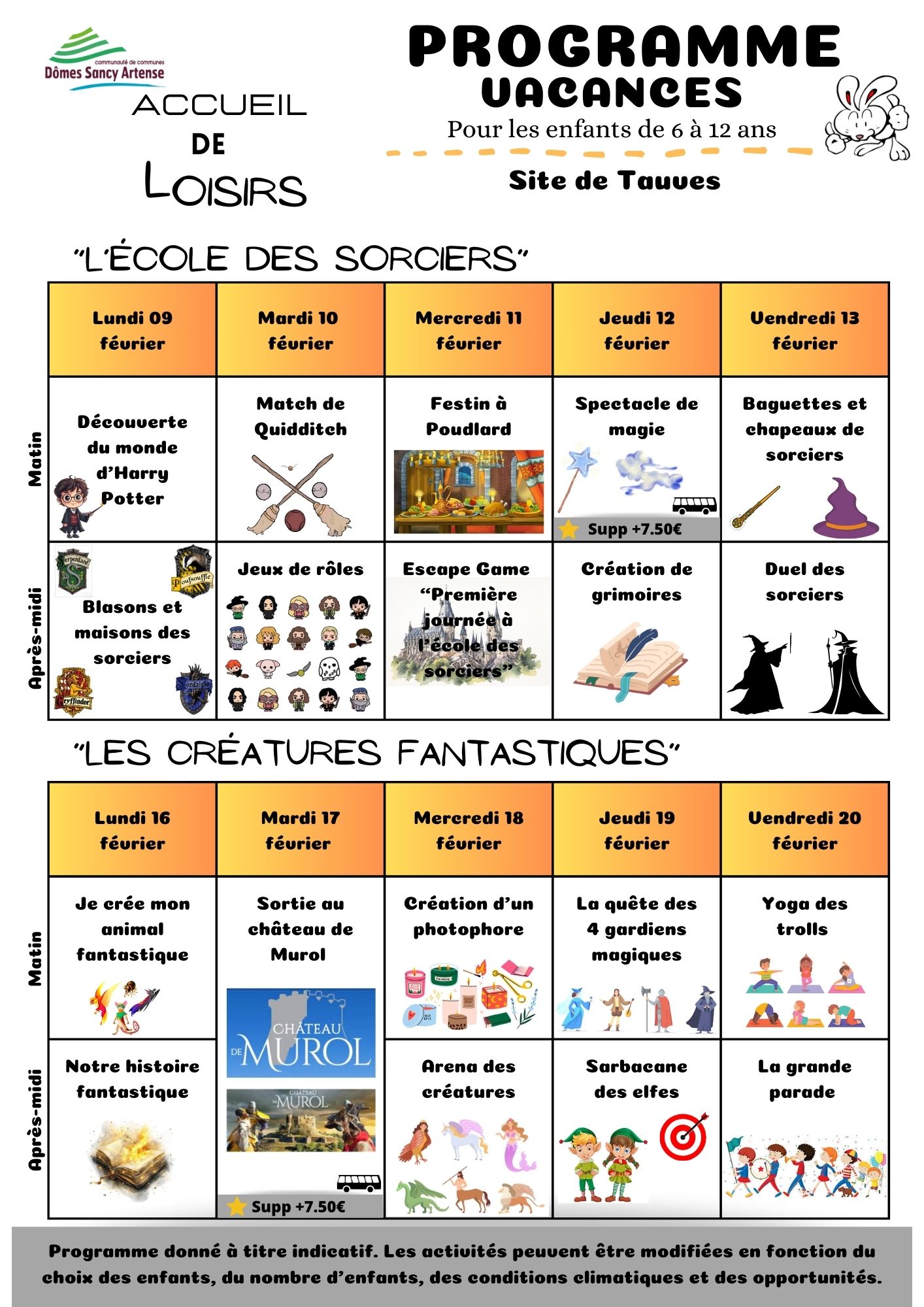 TAUVES - Programme vacances février 2026 6 - 12 ans